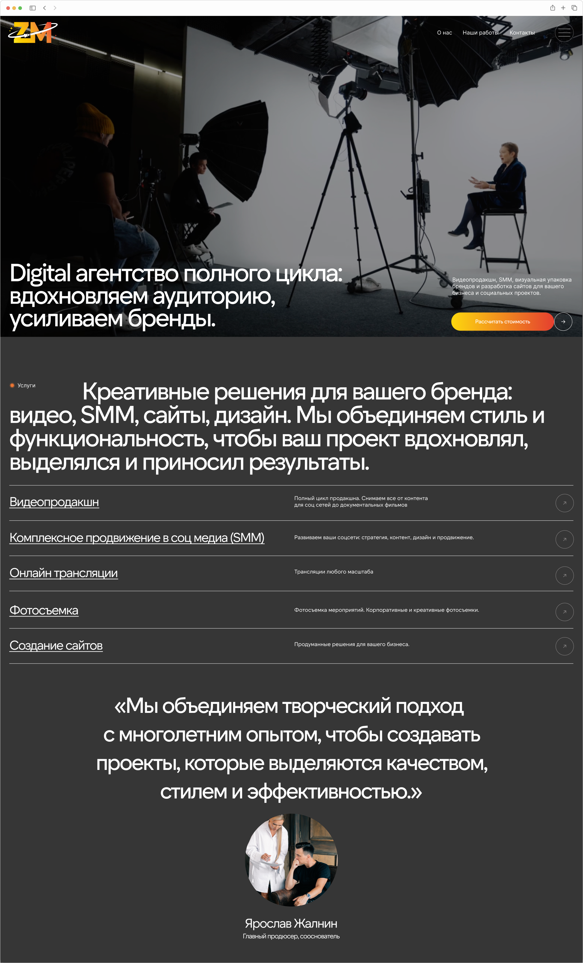 Работая над этим проектом, я стремилась создать не просто сайт-визитку, а инструмент, который поможет привлекать клиентов и эффективно презентовать свои услуги. Важно было подчеркнуть их сильные стороны и выстроить понятную структуру, которая отражает масштаб их работы. Получился современный, динамичный сайт, который легко воспринимается, а удобные CTA-блоки и форма обратной связи делают взаимодействие с агентством максимально комфортным.